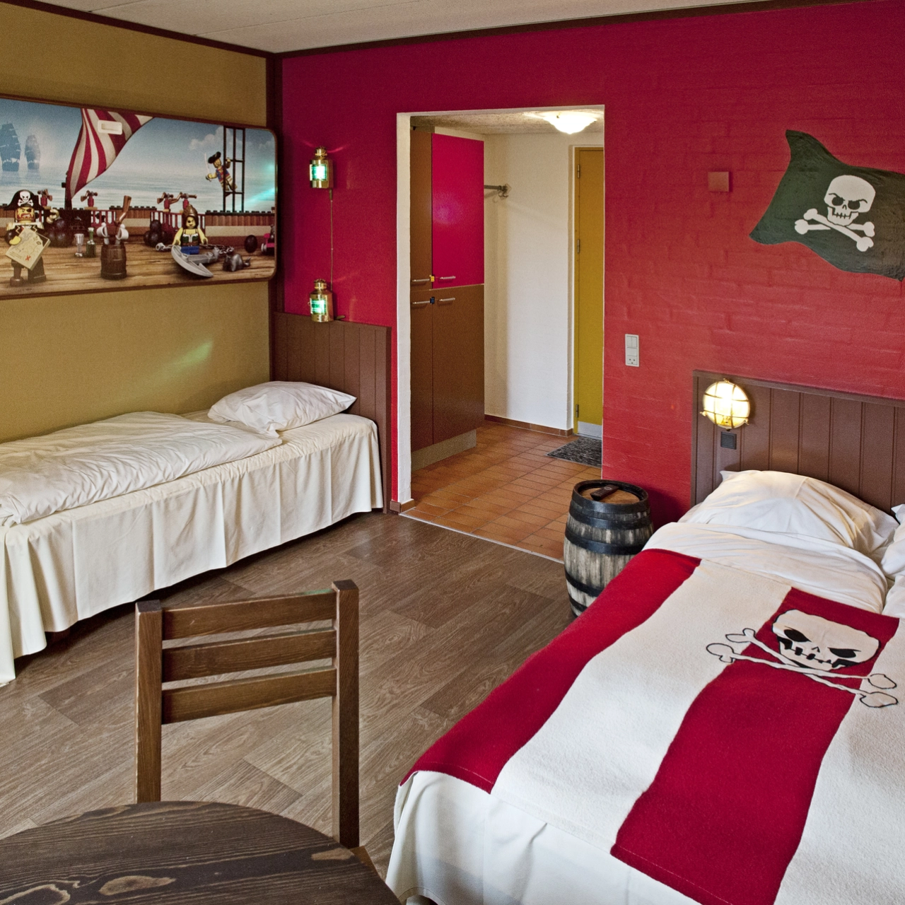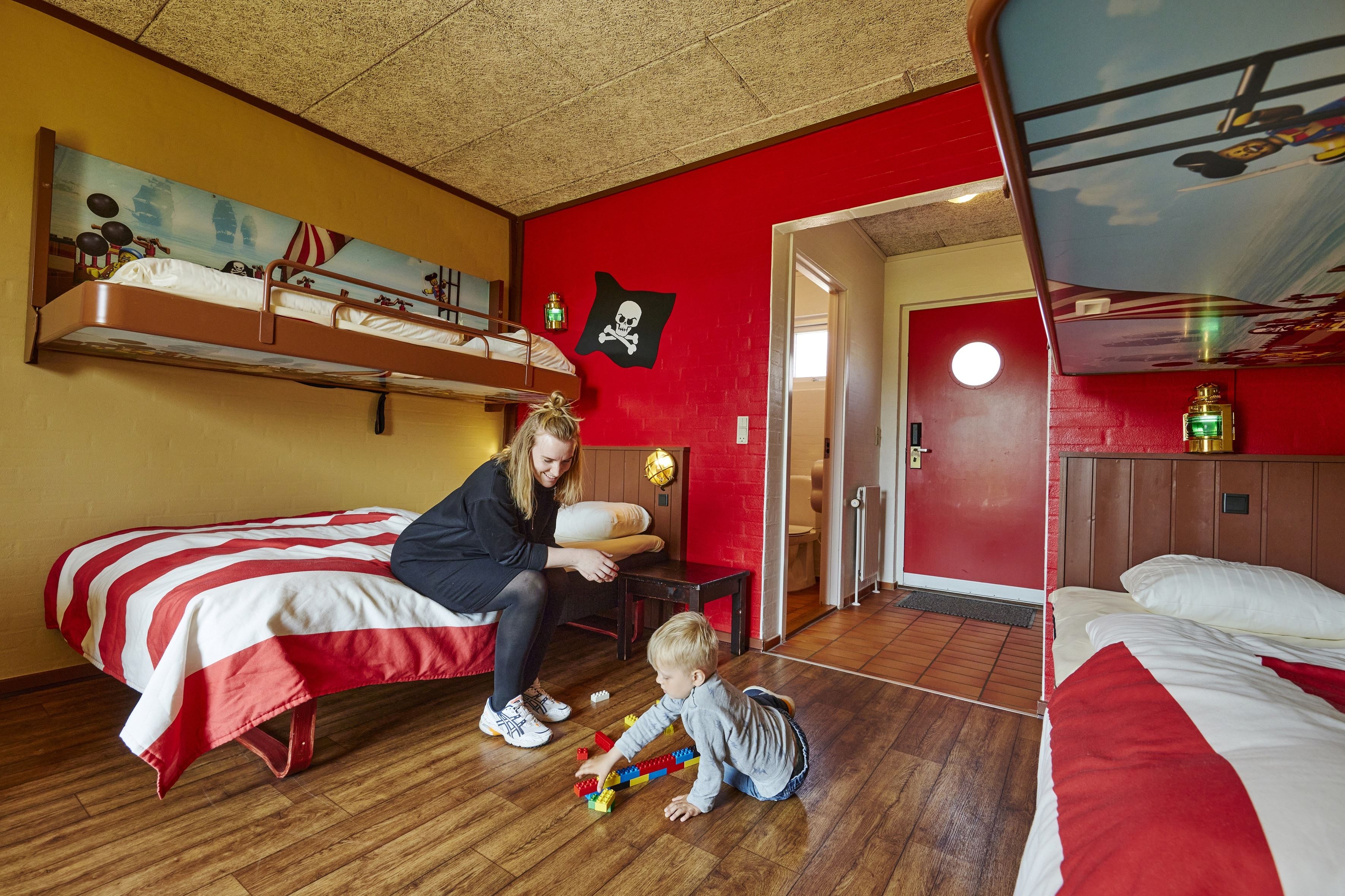 Familierom på 25 m² innredet i sjørøverstil med plass til 2 voksne og 2 barn.