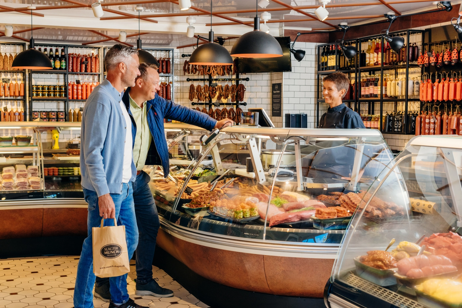 «Danmarks verdensberømte slagter» er viden kjent for sine fantastiske kjøttvarer. Her får du de lekreste  pølser, fileter, patéer og posteier.